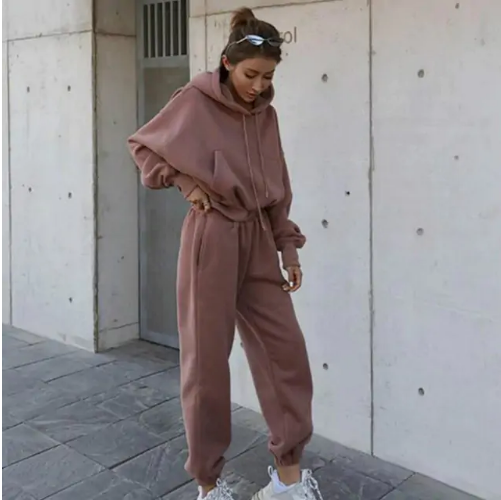 Are you looking for a stylish and comfortable sportwear set that will keep you warm during autumn and winter? Look no further than our Women Warm Hoodie and Pants Set! This sportwear set is made of high quality fleece material, making it super soft and cozy. It features a hoodie with drawstring closure, long sleeves, and two front pockets, as well as pants with an elastic waistband and two side pockets. This tracksuit set is perfect for jogging, working out at the gym, or simply lounging around the house on a lazy day. Plus, it comes in a variety of colors to choose from, so you're sure to find one that suits your style. So don't wait any longer, order our Women Warm Hoodie and Pants Set today!